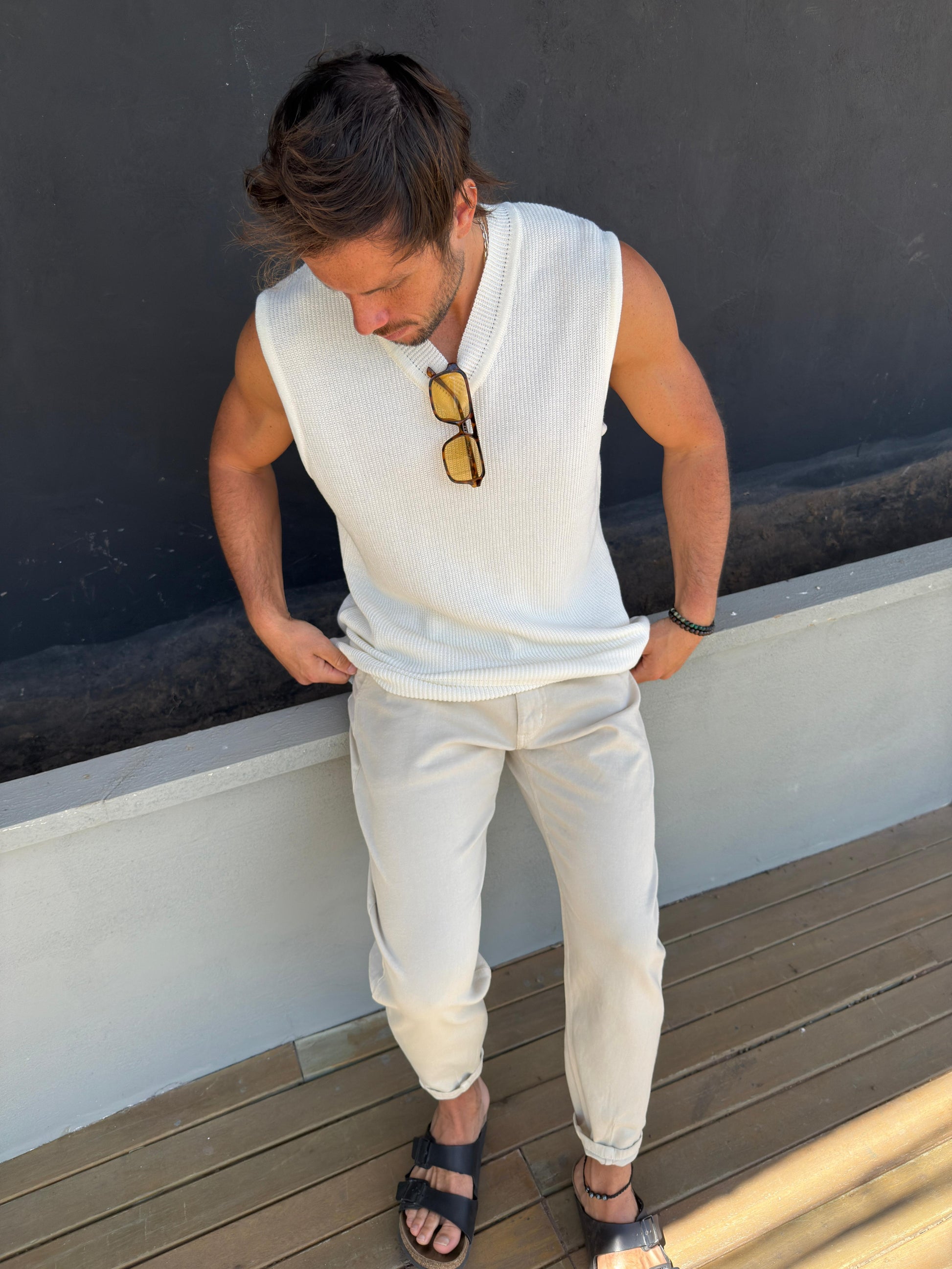 Chaleco escote V Hilo Blanco